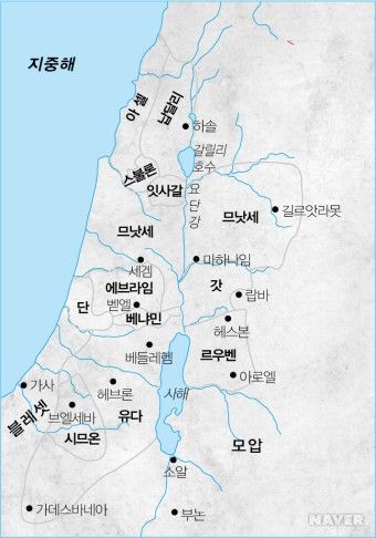 르우벤, 시므온, 레위, 유다, 단, 납달리, 갓, 아셀, 잇사갈, 스불론, 요셉, 베냐민 12명의 야곱의 아들들입니다. 이들이 이스라엘의 12지파를 계승하는데 요셉 대신 그의 두 아들이 지파의 이름을 갖게 됩니다. 므낫세와 에브라임이지요. 그래서 므낫세 반지파라고 불리우기도 하는데 이유가 바로 요셉의 두 아들이 요셉을 대신하였기 때문입니다. 이렇게 되면 총 13지파가 되는데 레위지파는 이스라엘의 장자들을 대신하여 하나님께 거룩히 성별되어, 봉사하는 존재로 선택되었기 때문에(출13:2, 13; 32:26-29) 율법을 받은 이후부터 일반 지파의 반열에서 배제가 되었습니다. 다른 말로하면 레위지파는 제사장으로 구별된 지파입니다.