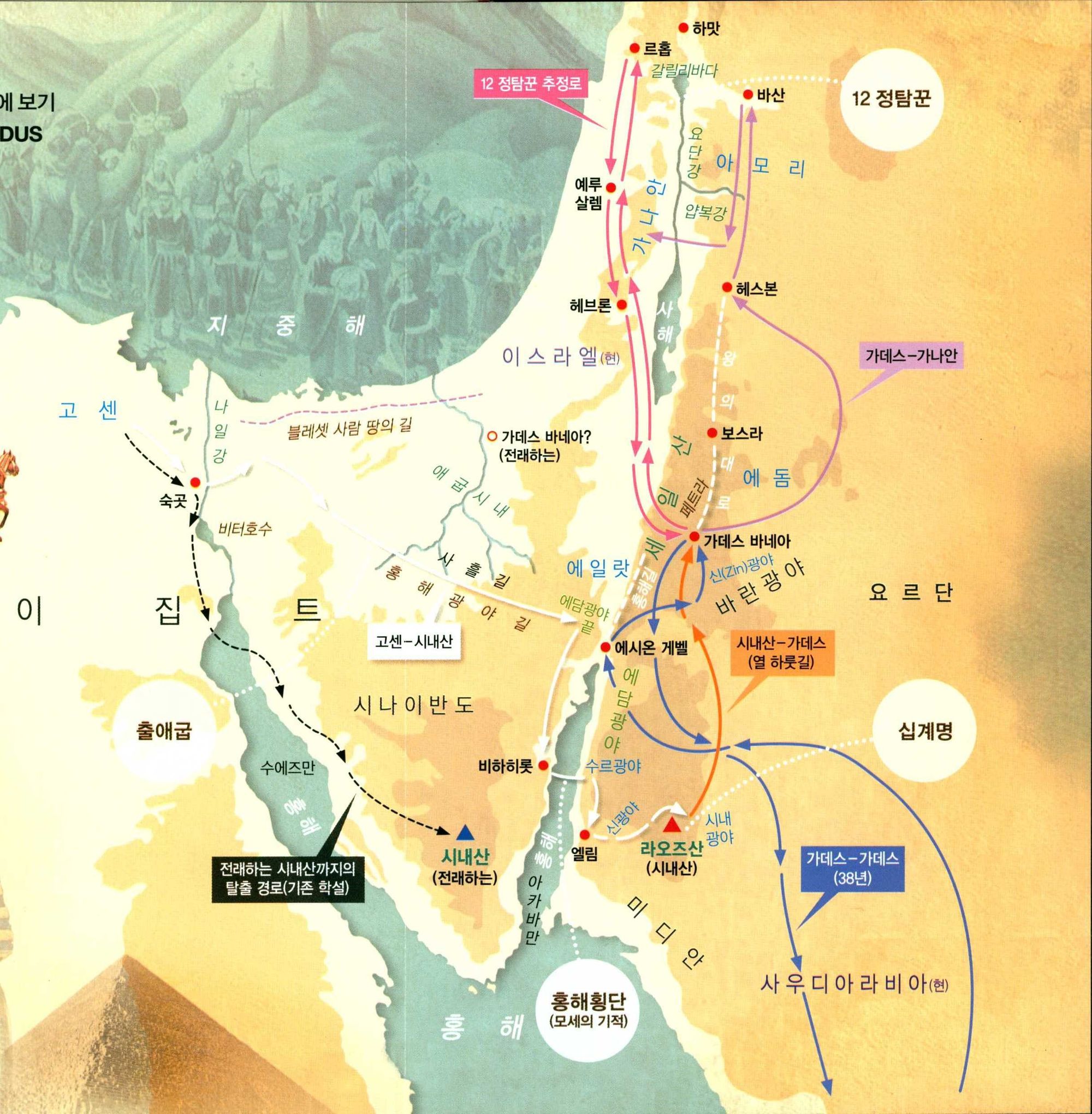 시내(호렙)산을 떠나 세일 산을 거쳐 가나안 땅 입구에 있는 가데스 바네아까지 왔는데 거리로 160km 열 하룻길입니다. 이 때 모세는 12명의 가나안 정탐꾼을 선택하고 이스라엘이 들어갈 그 땅, 가나안을 살펴보고 오라고 명령합니다.
